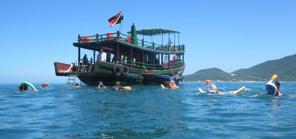 9:00: Go snorkeling at one of beautiful islets of Cham Island. Tropical fruits and cold beer or water will be served on board after you have enjoyed snorkeling)